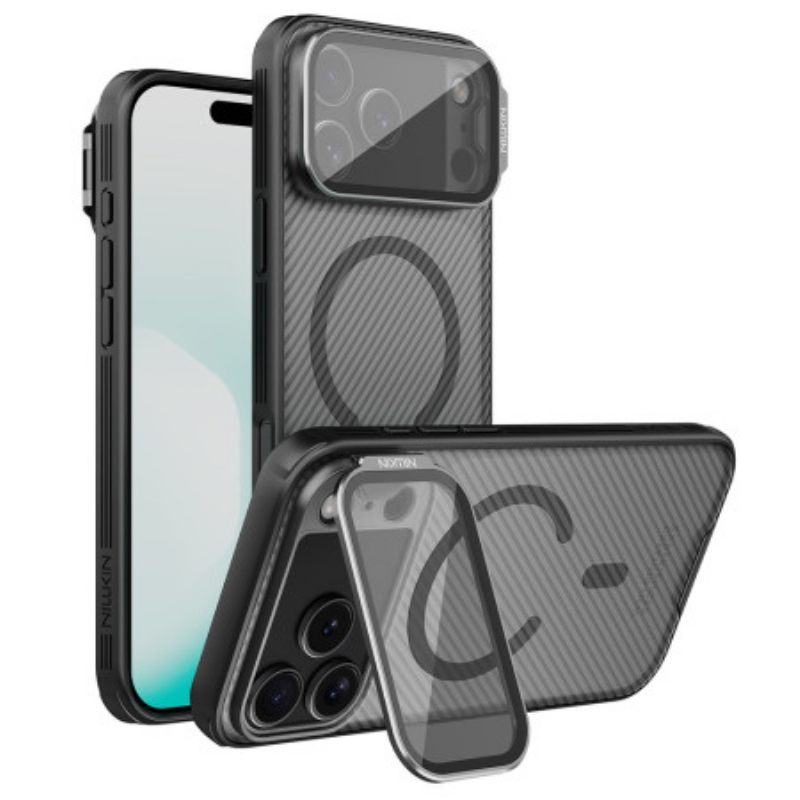 Innovaatiota ja turvallisuutta yhdistävä NILLKIN CamShield Prop Magnetic Series -kotelo iPhone 17 Pro Maxille erottuu edukseen läpinäkyvällä kamerasuojallaan, joka toimii myös kätevänä jalustana videoiden katseluun. Kestävästä PC:stä ja joustavasta TPU:sta valmistetussa suojakotelossa on putoamissuojatut turvatyynyt kaikissa neljässä kulmassa ja liukumaton pinta, joka kestää naarmuja, sormenjälkiä ja pölyä. MagSafe-yhteensopiva integroitujen magneettien ansiosta, se tarjoaa täydellisen ja toimivan suojan tinkimättä älypuhelimen muotoilusta tai helppokäyttöisyydestä.
